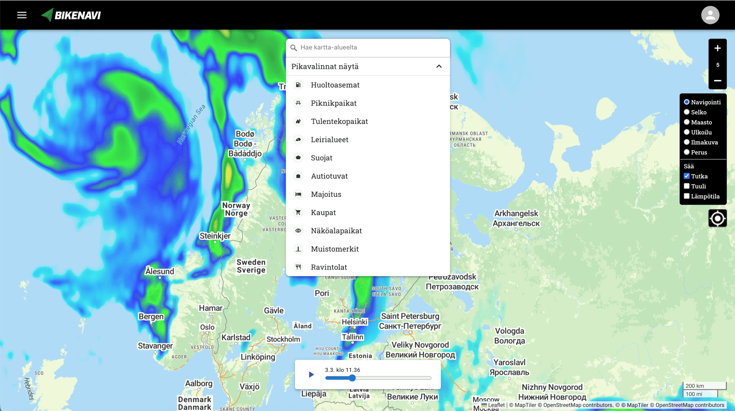 Weather radar: Follow the movement of rain fronts and time your breaks correctly.