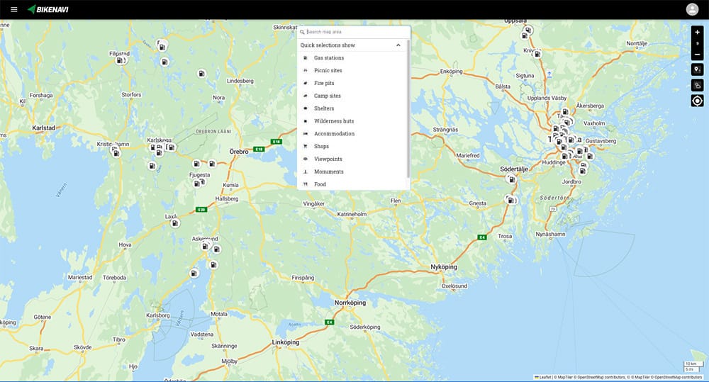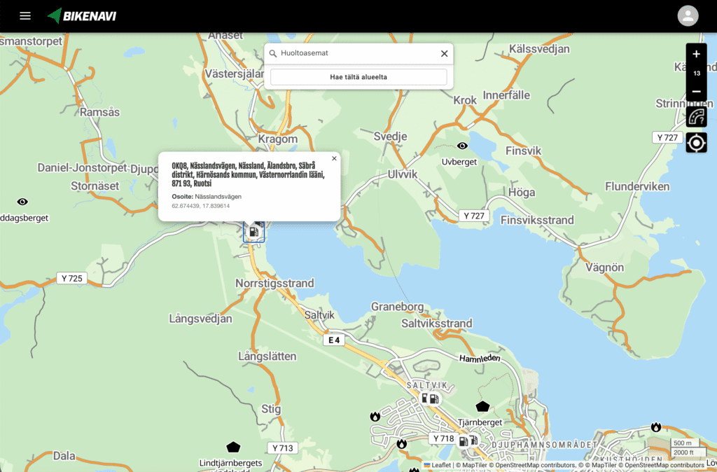 También puedes planificar tus rutas en tu ordenador o tableta en aplicación.bikenavi.fi. Esta es la aplicación de planificación web de Bikenavi, optimizada para una edición de rutas precisa y eficiente. La pantalla más grande y el control con ratón facilitan la planificación que en dispositivos móviles.